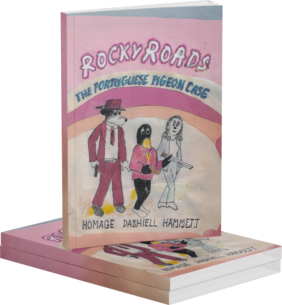 This book is a retro journey into a phantasy world inspired by the Film Noir movies and .private eye radio shows of the 1940’s. Rocky Roads was developed when I was a teen-ager in the 1950’s. The drawings were filed away and forgotten until they were found two years ago. Thinking it might be fun, I developed the character as a more adult graphic novel. This piece is based in part on a Film Noir classic Gas Light.